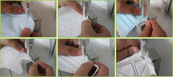 可用于杯形口罩、立體口罩耳帶點焊及織帶、魔術(shù)貼、工藝品、小型塑膠件等點焊。