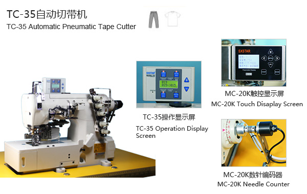 應(yīng)用場(chǎng)景:針織服裝的圓領(lǐng)部位縫制、下擺鎖口包邊,胸圍泳衣肩帶,西褲牛仔褲褲耳的自動(dòng)定長(zhǎng)切斷。