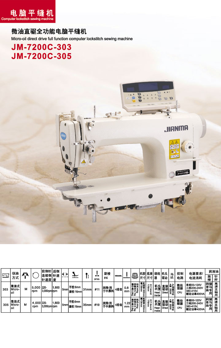 JM-7200C-303 微油直驅全功能電腦平縫機