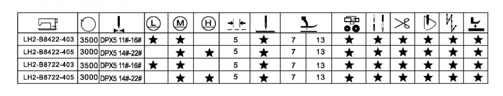 Imported parts and original revolving shuttles are adopted ,where low noise and stable seams are generated.