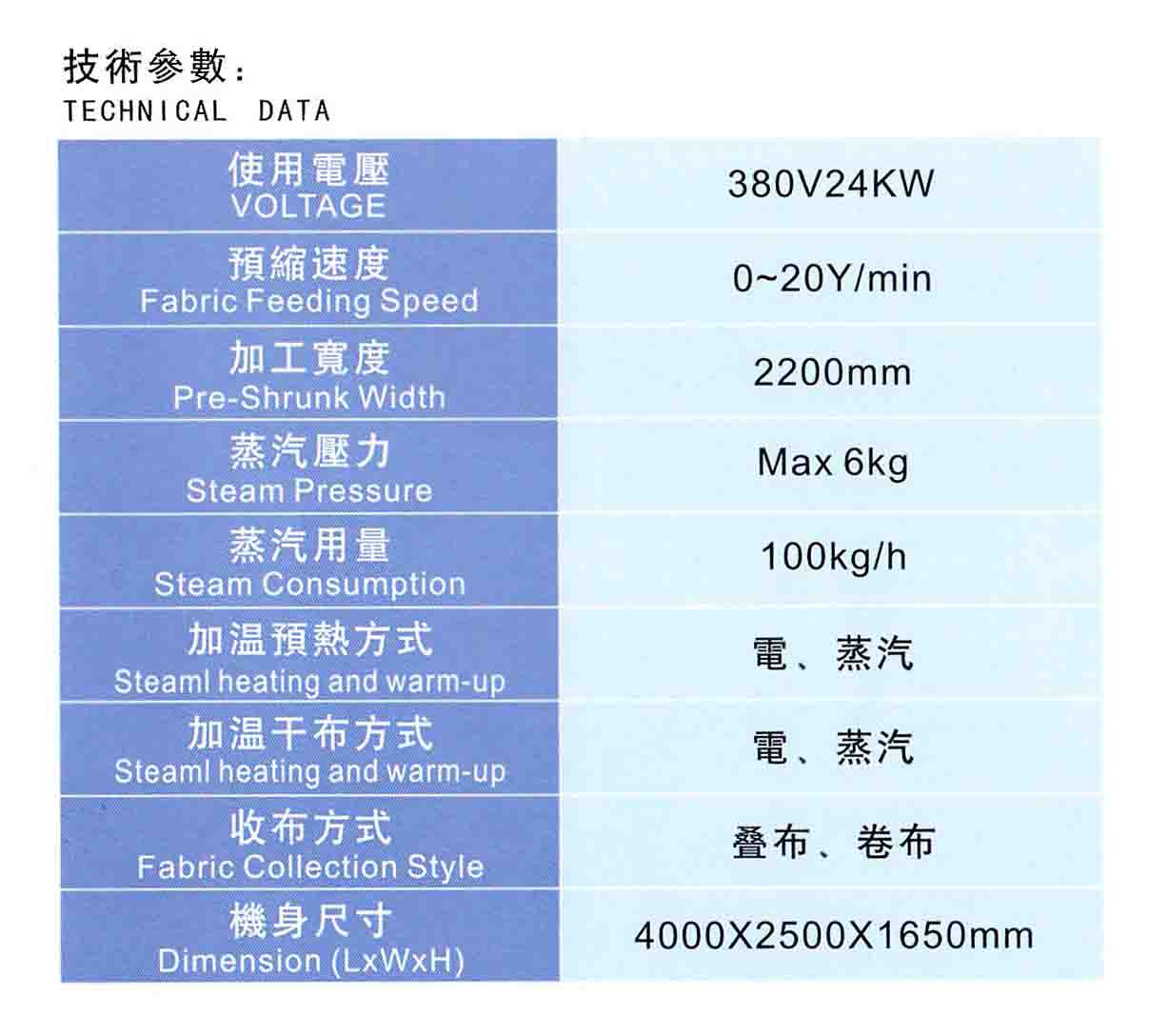 1.本機(jī)采用蒸汽預(yù)縮,電熱烘干區(qū)設(shè)計(jì);具有調(diào)速功能,可根據(jù)實(shí)際預(yù)縮需要調(diào)整預(yù)縮速度;